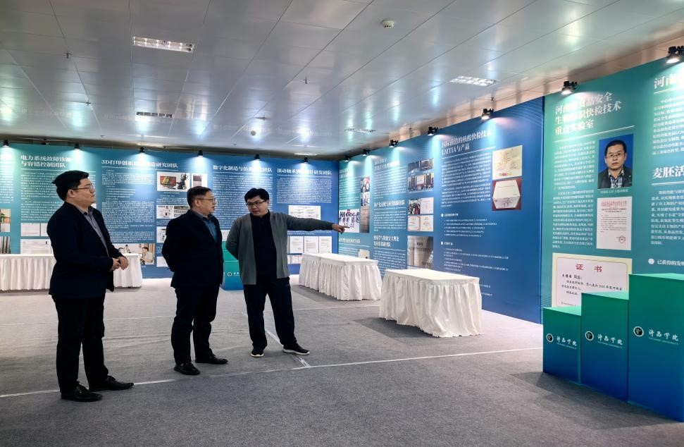 王豪总经理带领参观了科技园一楼大厅许昌学院校地合作成果展、大型仪器共享中心以及代表性在孵企业。对许昌学院科技创新、人才队伍、校企合作以及许昌大学科技园在孵企业、在研项目、大型仪器共享中心情况进行了简要介绍。