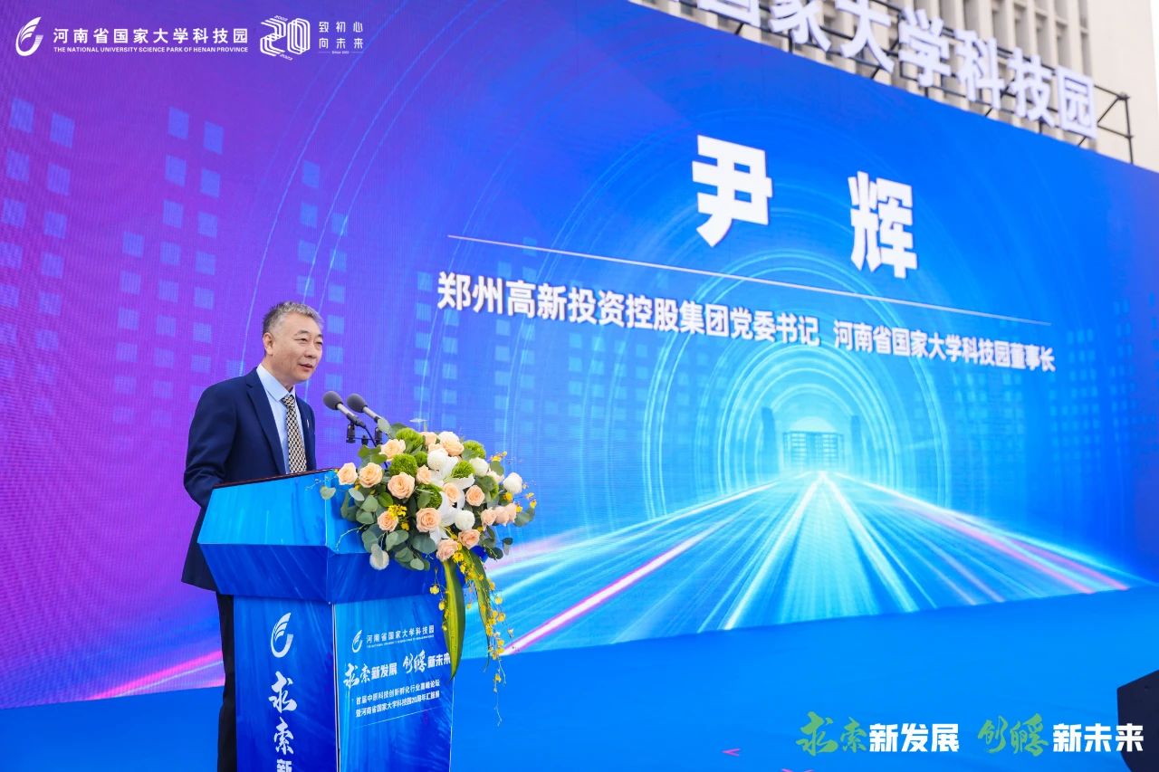 河南省国家大学科技园董事长尹辉致欢迎辞,他向河南省国家大学科技园20年风雨历程中做出卓越贡献的各位领导、专家、学者、企业家以及园区工作人员表示衷心的感谢。他表示,作为河南省第一家国家级大学科技园,20年来河南省国家大学科技园坚持“多校一园、共同发展”的模式,借助高校资源、依托高新区产业政策,在创新创业、产业发展、人才培养等多方面取得了一系列突破性成果。未来,河南省国家大学科技园将继续在省市区各级政府坚强领导下、在投控集团和股东高校的正确引领下,坚持创新驱动发展,聚焦高新技术产业,培育高新技术企业,推动科研成果转化,培养创新创业人才,努力打造成为具有国际影响力的创新高地。
