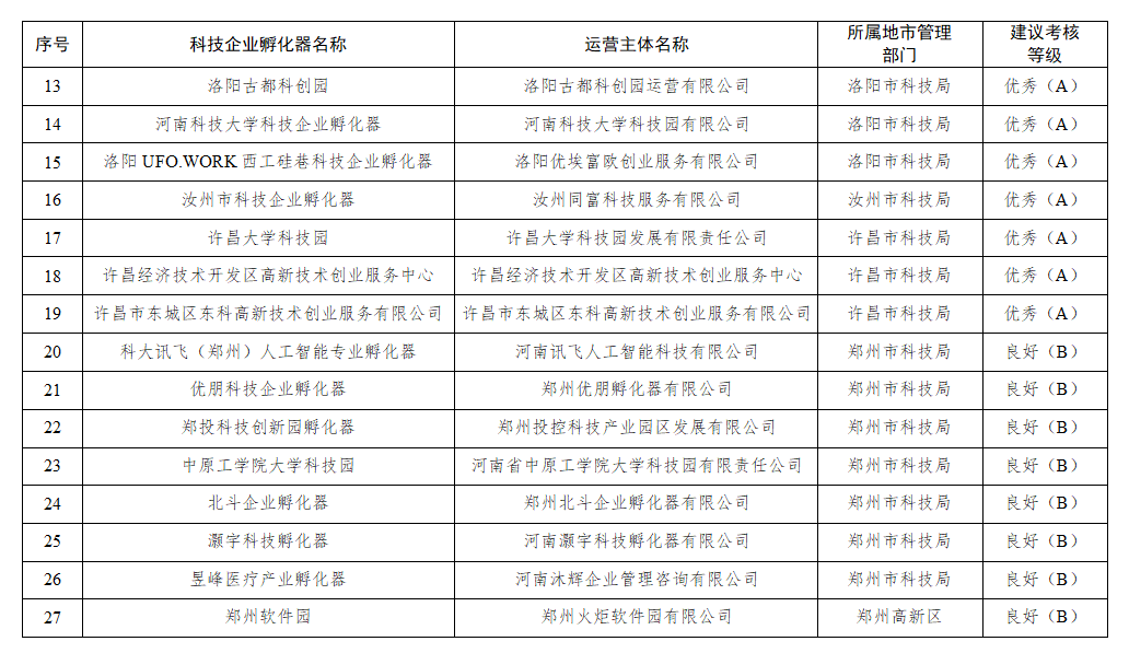 许昌大学科技园在2023年度省级科技企业孵化器评价中获评优秀!