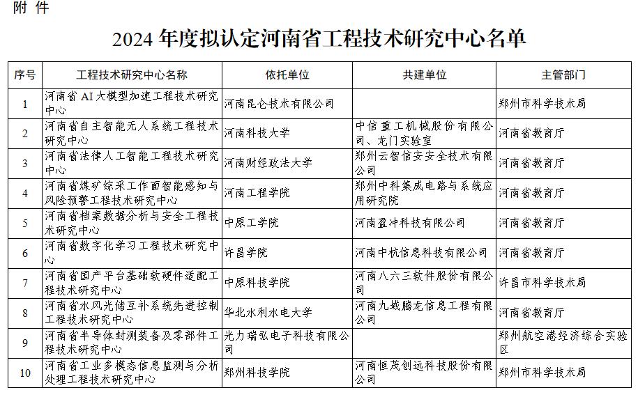 根据《河南省工程技术研究中心建设运行管理办法(暂行)》和《关于组织申报2024年河南省工程技术研究中心的通知》要求,经单位申报、主管部门推荐、专家论证和研究等程序,2024年度河南省工程技术研究中心名单已经公布。其中许昌大学科技园在园企业河南中杭信息科技有限公司与许昌学院联合申报的河南省数字化学习工程技术研究中心获批。