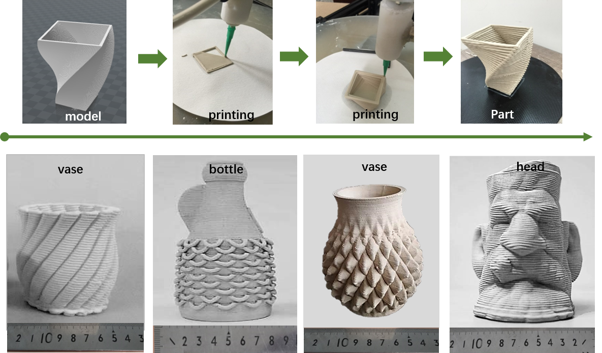 (2)电推送料螺旋挤出陶泥3D打印技术成果,有望与许昌钧瓷产业相结合,开展个性化钧瓷生坯的3D打印,结合许昌三国文化,开展钧瓷文创产品的设计开发和打印制作。