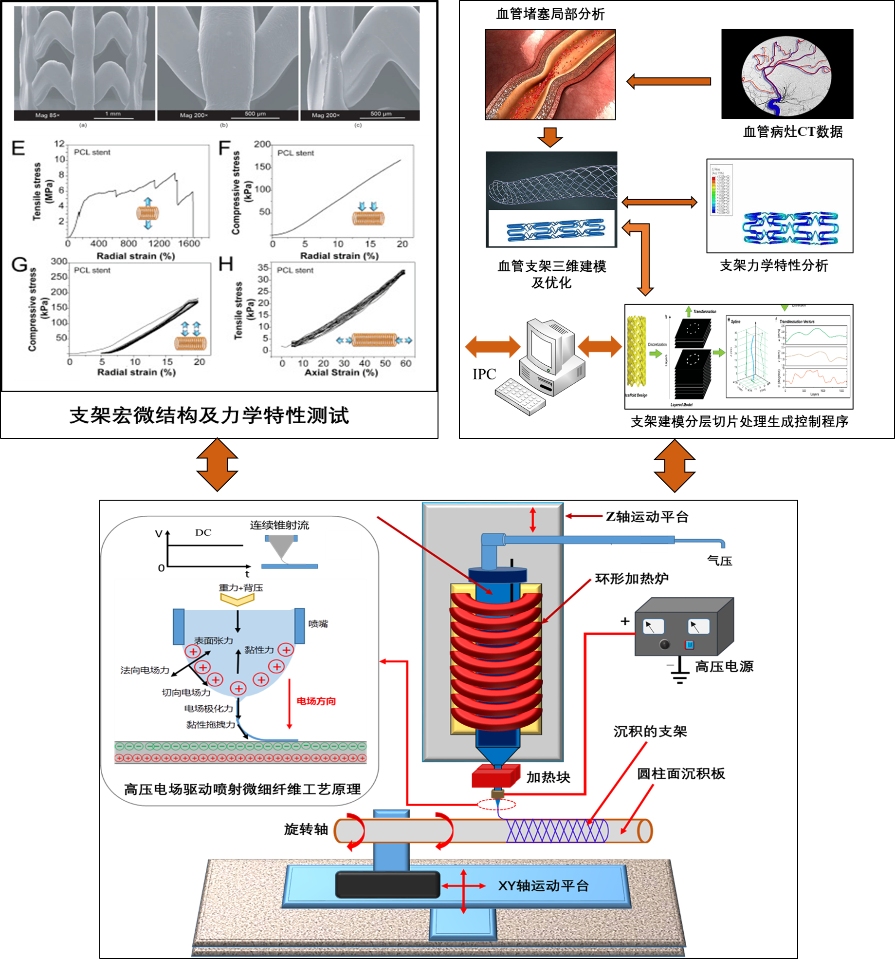 (1)降解血管支架高压电场驱动精确打印技术成果,以期实现第四代全降解聚合物血管支架的成形制备,有望满足心血管患者个性化定制全降解聚合物血管支架的短流程、低成本、柔性化制造的需求。可与许昌市相关生物医药企业,开展技术的联合开发与应用推广。